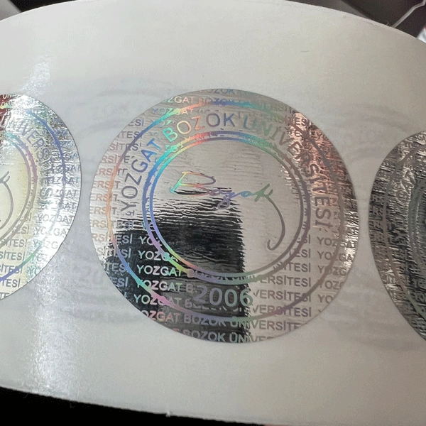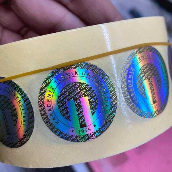 - Klişe baskılı hologram etiket, detaylı tasarımlarla öne çıkar.